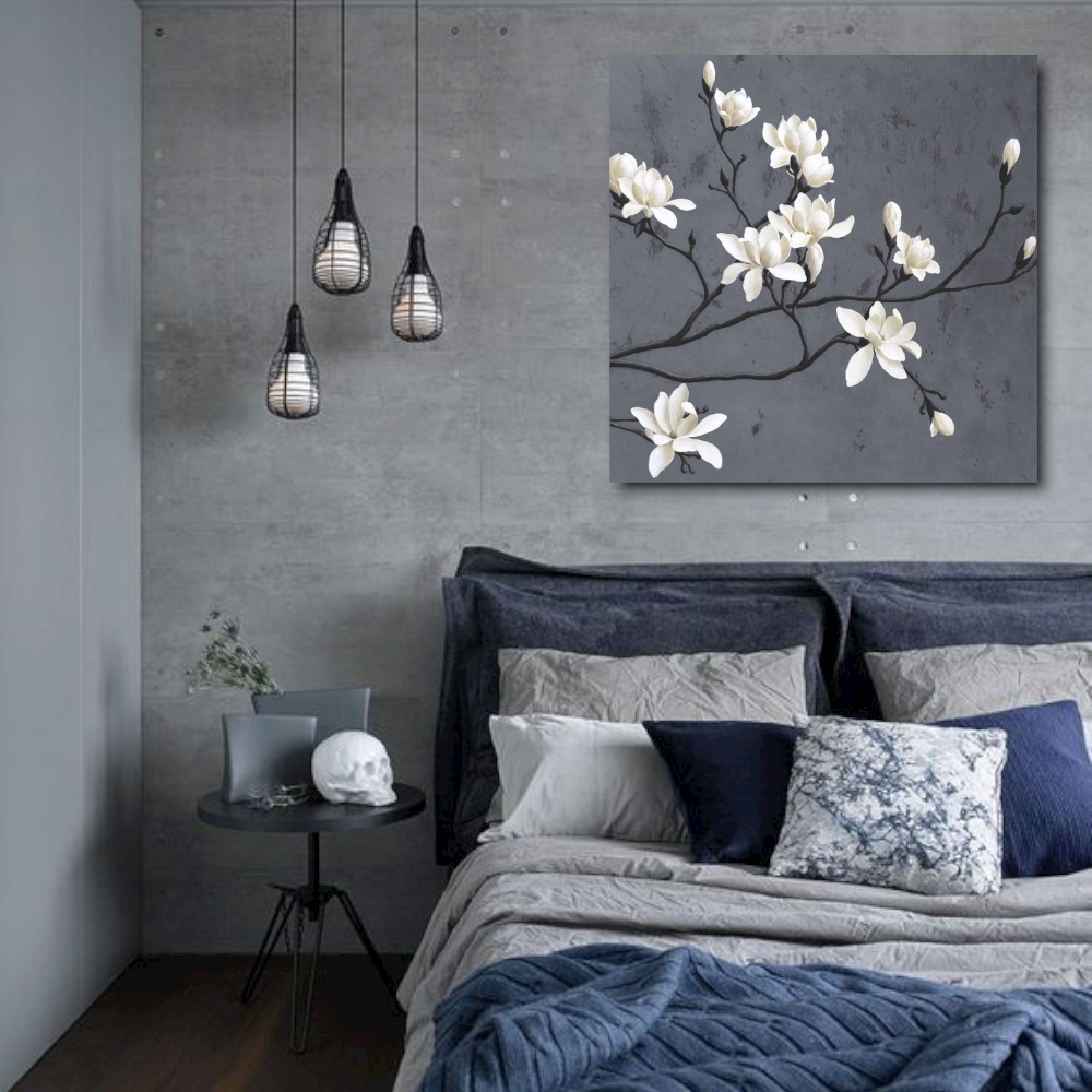 M718 - Πίνακας άνθη λεμονιάς σε γκρι φόντο