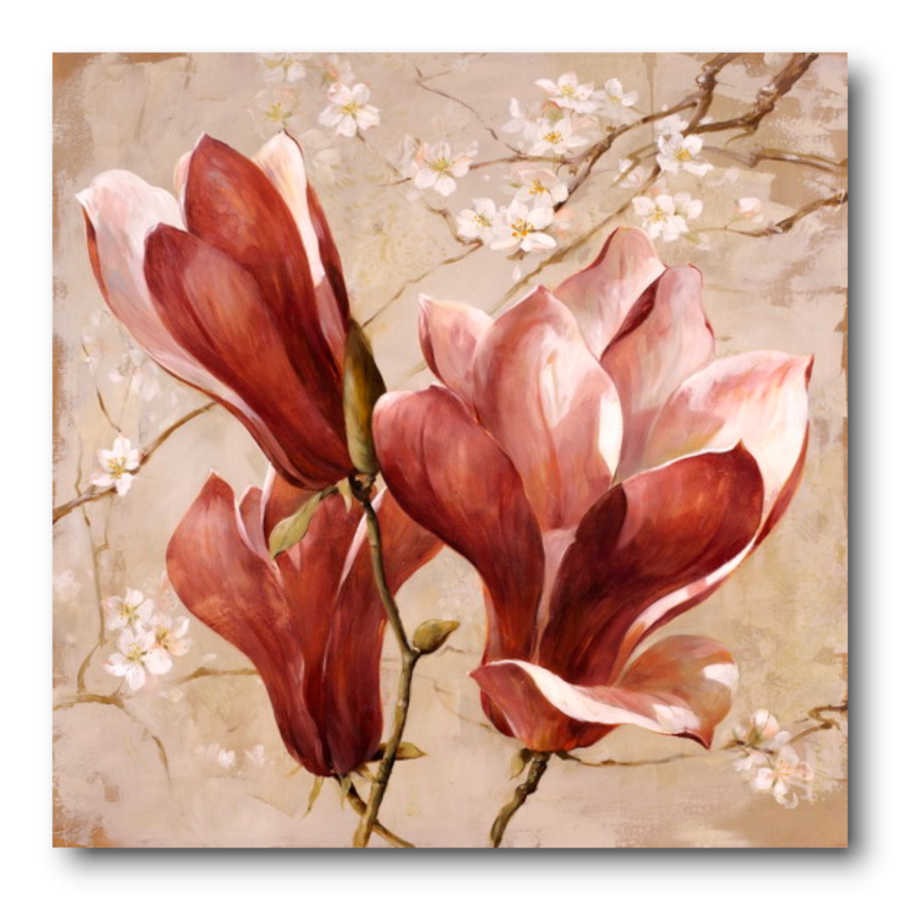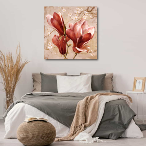 M904 - Πίνακας βυσσινί λουλούδι σε μπεζ φόντο