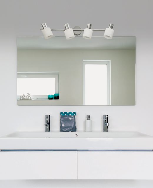 Πρόκειται για ένα μεταλλικό σποτ σε χρώμιο απόχρωση με τέσσερις λαμπτήρες. Το λευκό γυαλί επιτρέπει στο φως να διαχέεται ομοιόμορφα στον χώρο. Το μπροστινό μέρος του κινείται προς οποιαδήποτε κατεύθυνση.