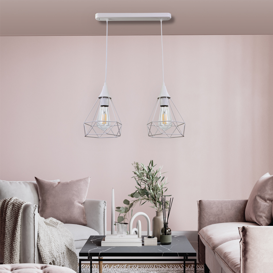 Πρόκειται για ένα μεταλλικό κρεμαστό φωτιστικό σε χρώμα λευκό. Η μίνιμαλ σχεδίασή του το τοποθετεί σε οποιονδήποτε μοντέρνο εσωτερικό χώρο. Η ανάρτησή του ρυθμίζεται για να λάβει το επιθυμητό ύψος. Το φως διαχέεται σε όλον τον χώρο ομοιόμορφα.