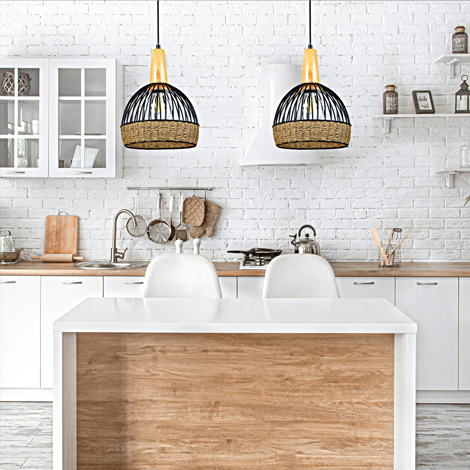 Πρόκειται για ένα φωτιστικό οροφής κατασκευασμένο από μαύρο μέταλλο. Η σχεδίασή του επιτρέπει τη διάχυση του φωτός. Το ξύλο και το σχοινί προσδίδουν τη ζεστασιά που χρειάζεται. Επιπλέον ρυθμίζεται για να λάβει το ιδανικό ύψος για κάθε χώρο.