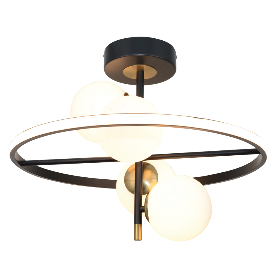 Πρόκειται για ένα φωτιστικό κατασκευασμένο από μαύρο και χρυσαφί μέταλλο. Οι λευκές οπαλίνες καλύπτουν φωτισμό G9 λαμπτήρων και η λευκή ακρυλική επιφάνεια LED φωτισμό θερμής απόχρωσης.