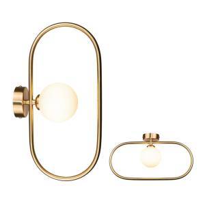 Πρόκειται για ένα φωτιστικό κατασκευασμένο από χρυσαφί μέταλλο και λευκή οπαλίνα. Το φως διαχέεται ομοιόμορφα και μπορεί να τοποθετηθεί και ως φωτιστικό οροφής.