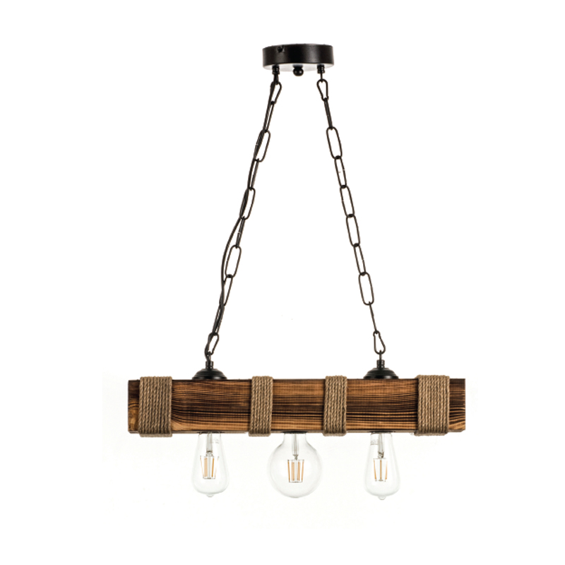 Κρεμαστό φωτιστικό από ξύλο και σχοινί 3XE27 D:50cm (5318-3)