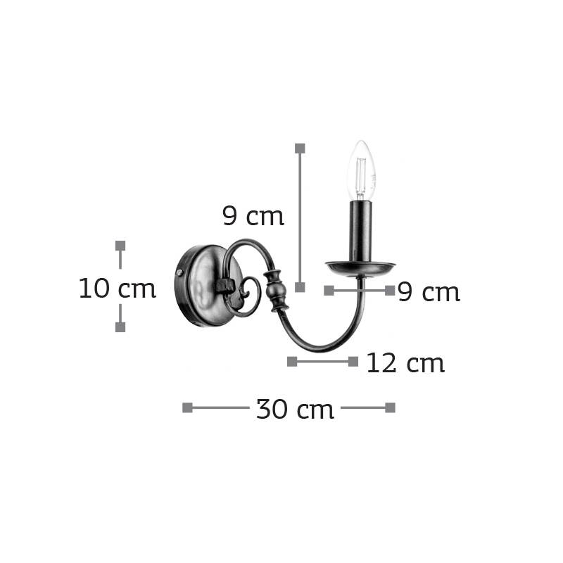 Πρόκειται για ένα επιτοίχιο φωτιστικό από οξυντέ μέταλλο με έναν λαμπτήρα. Κατάλληλο για διακόσμηση κλασσικών εσωτερικών χώρων. Διατίθεται και λευκό υφασμάτινο καπέλο για πιο απαλό φωτισμό το οποίο θα πρέπει να ζητηθεί επιπλέον.