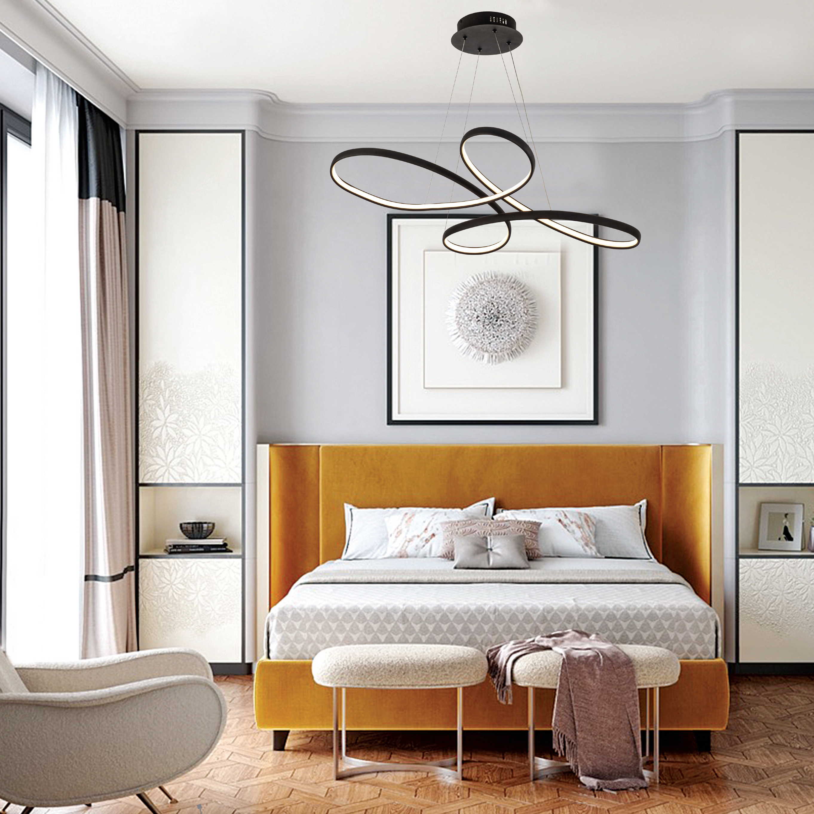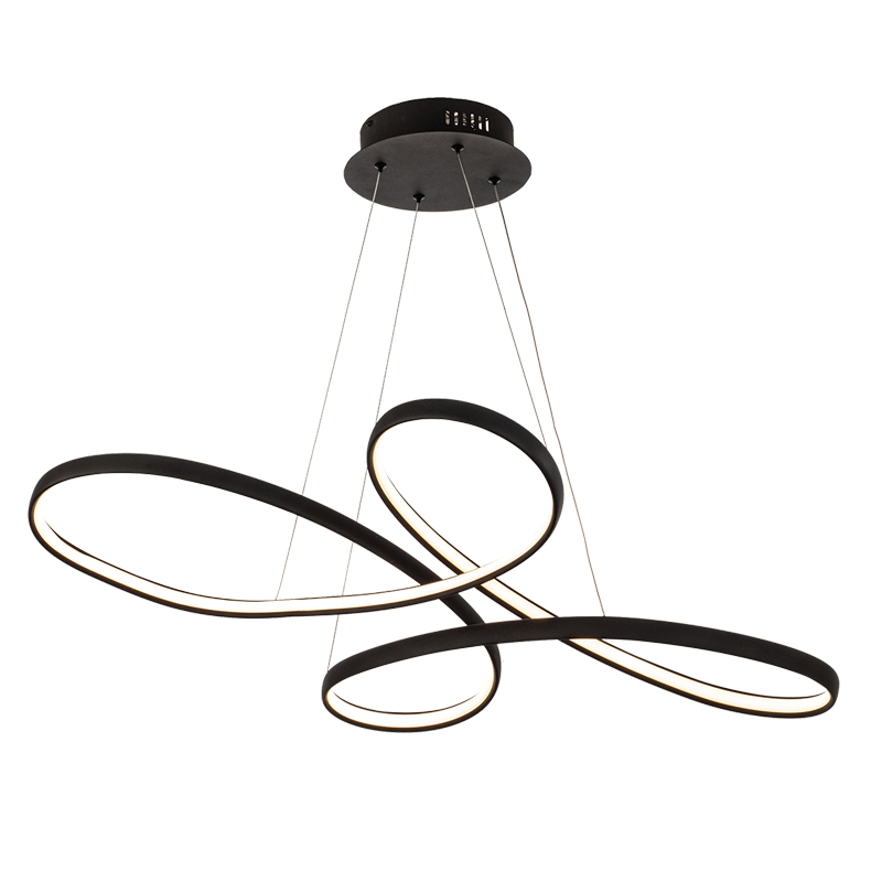 Πρόκειται για ένα μαύρο κρεμαστό φωτιστικό με κυκλική σχεδίαση κατασκευασμένο από αλουμίνιο. Η λευκή ακρυλική του επιφάνεια καλύπτει τον led φωτισμό θερμής απόχρωσης. Η ανάρτησή του είναι ρυθμιζόμενη ώστε να προσαρμόζεται στον κάθε χώρο.