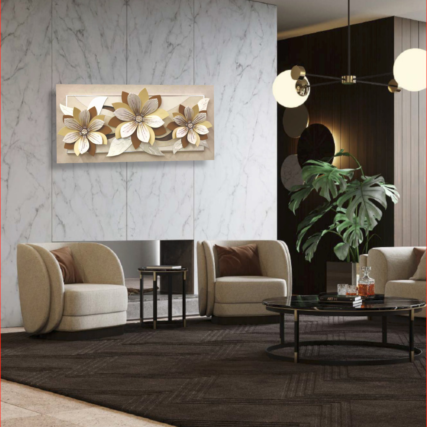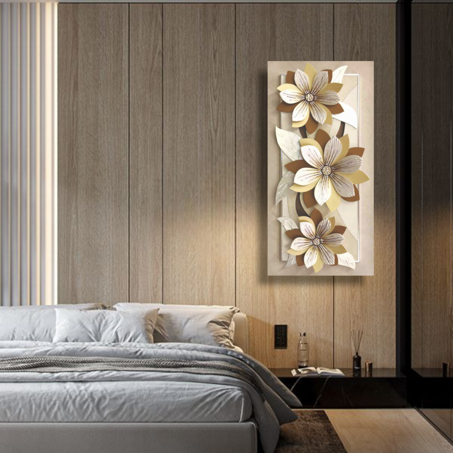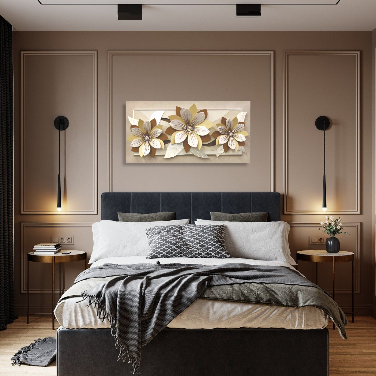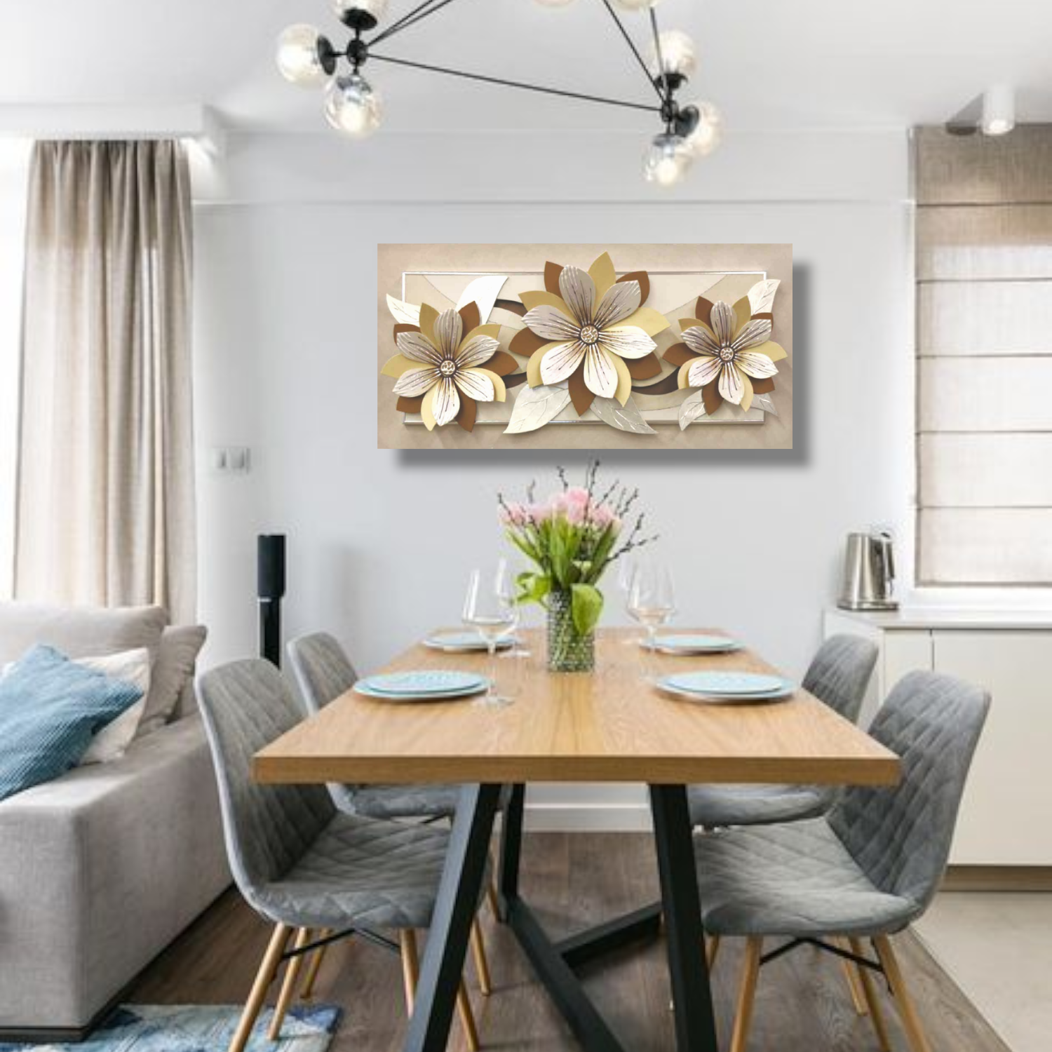Ένας υπέροχος, τρισδιάστατος πίνακας, με λουλούδια σε γήινα χρώματα.