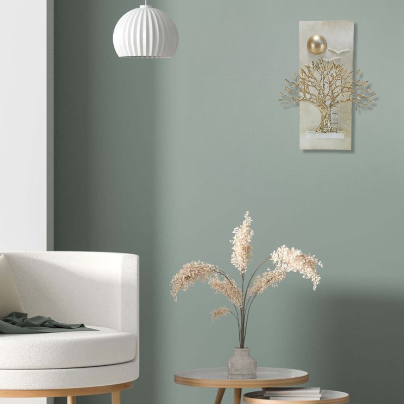 Χειροποίητη επιτοίχια ελιά, σε χρυσή απόχρωση. Ιδανική να στολίσει το τζάκι, μια κενή γωνιά του τοίχου στην κρεβατοκάμαρα, στο σαλόνι ή την τραπεζαρία.