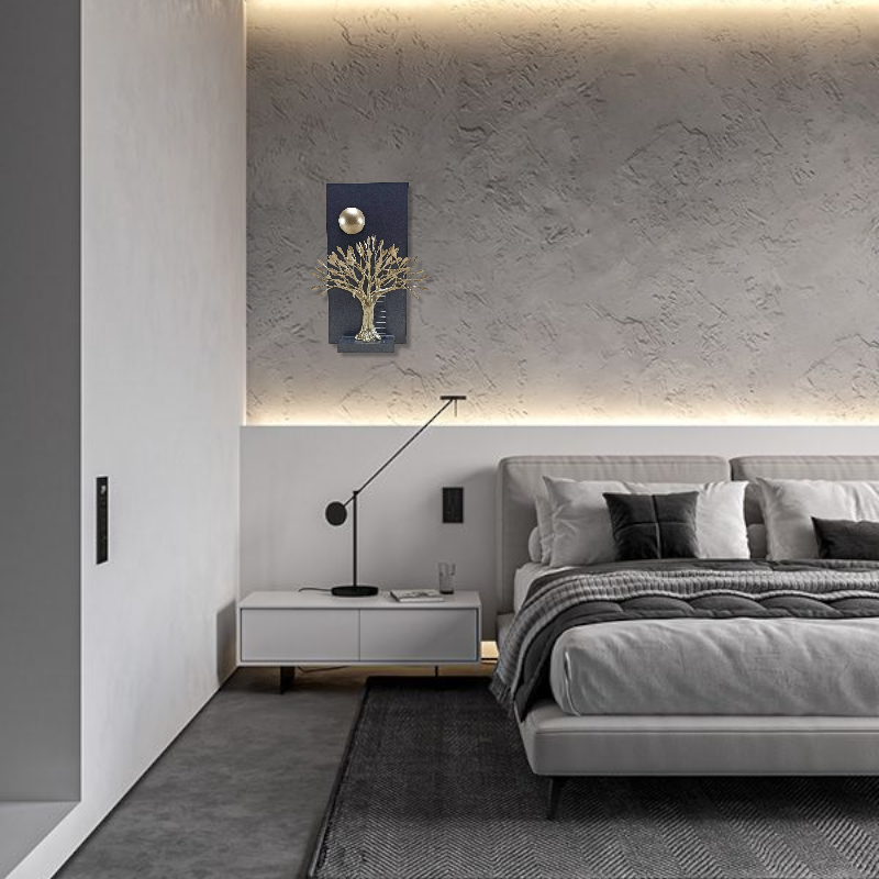 Χειροποίητη επιτοίχια και επιτραπέζια ελιά, σε χρυσή απόχρωση με ανθρακί ξύλινο ταμπλό. Ιδανική να στολίσει το τζάκι, μια κενή γωνιά του τοίχου στην κρεβατοκάμαρα, στο σαλόνι ή την τραπεζαρία.