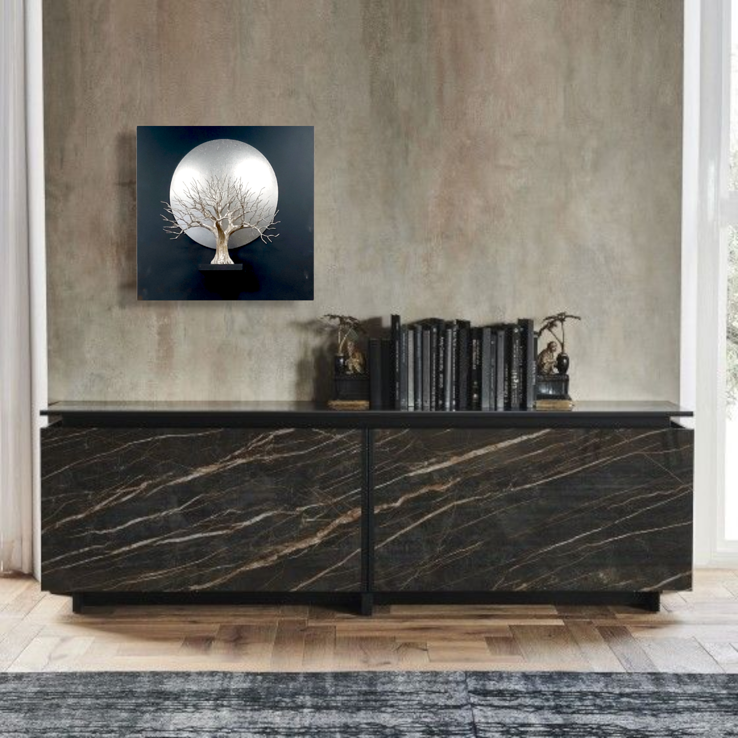 Χειροποίητη επιτοίχια ελιά σε ασημένιες και μπεζ αποχρώσεις.