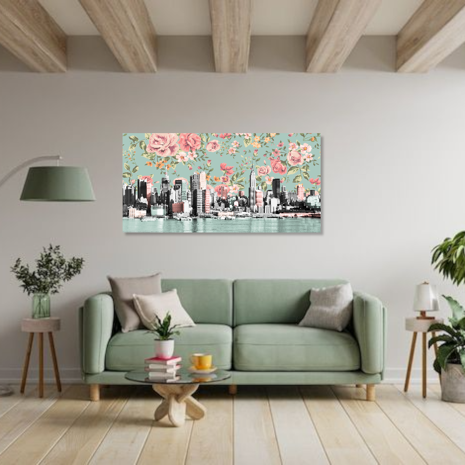 M942 - Πίνακας ουρανοξύστες και λουλούδια