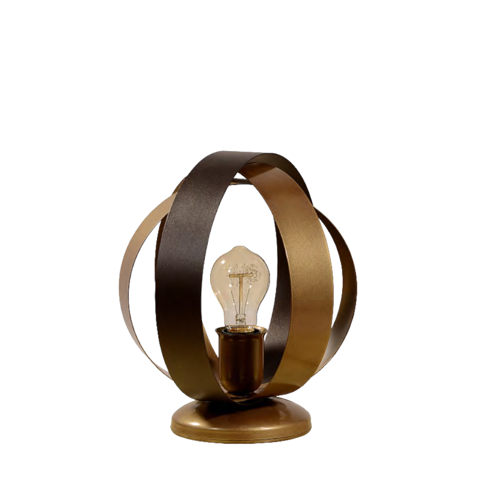 Επιτραπέζιο χειροποίητο φωτιστικό,πορτατίφ, με στρογγυλές μεταλλικές λάμες, σε μοντέρνο συνδυασμό οξυντέ-σκουριά.
