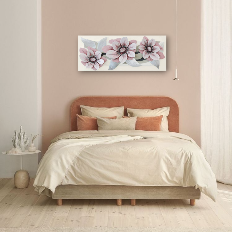 Ένας υπέροχος τρισδιάστατος πίνακας, με ροζ λουλούδια.