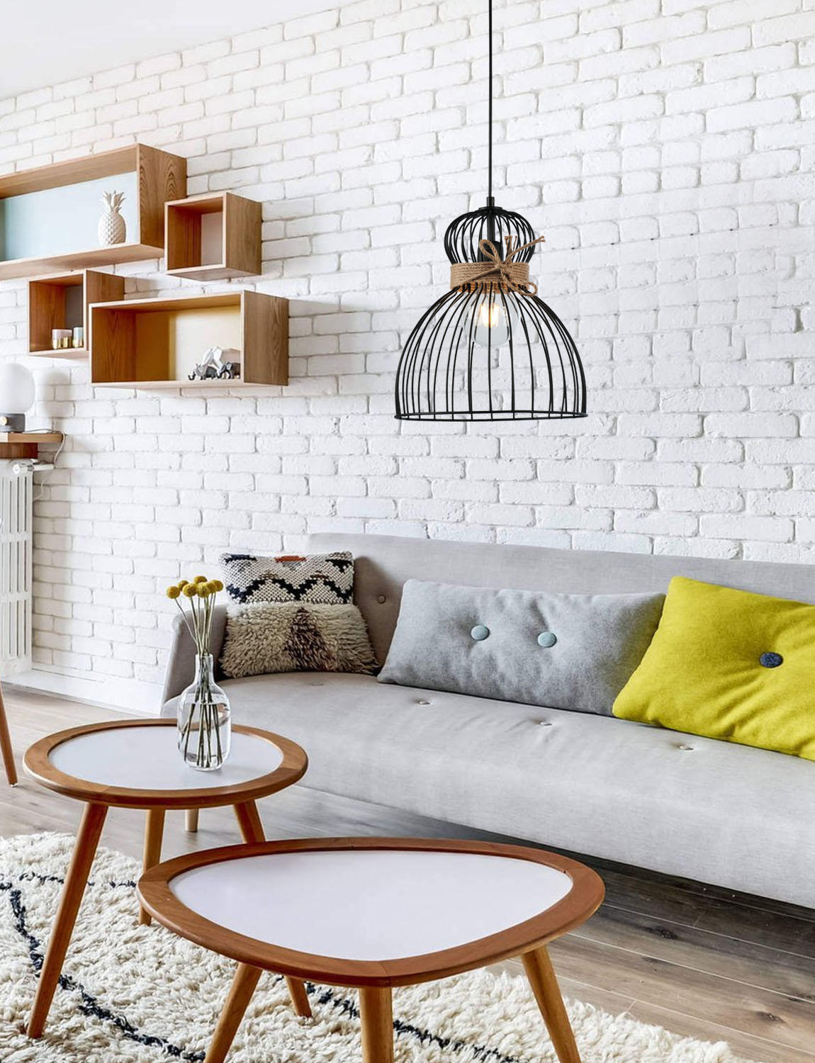 Φωτιστικό μονόφωτο σε μοντέρνα γραμμή από μέταλλο μαύρο τυλιγμένο με φυσικό σχοινί Ε27 Φ30