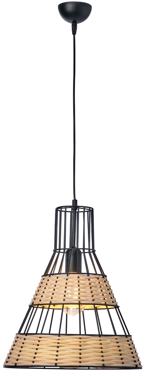 Φωτιστικό μονόφωτο μέταλλο/ρατάν σε μαύρο χρώμα και ρατάν σε φυσικο χρώμα Ε27 Φ35