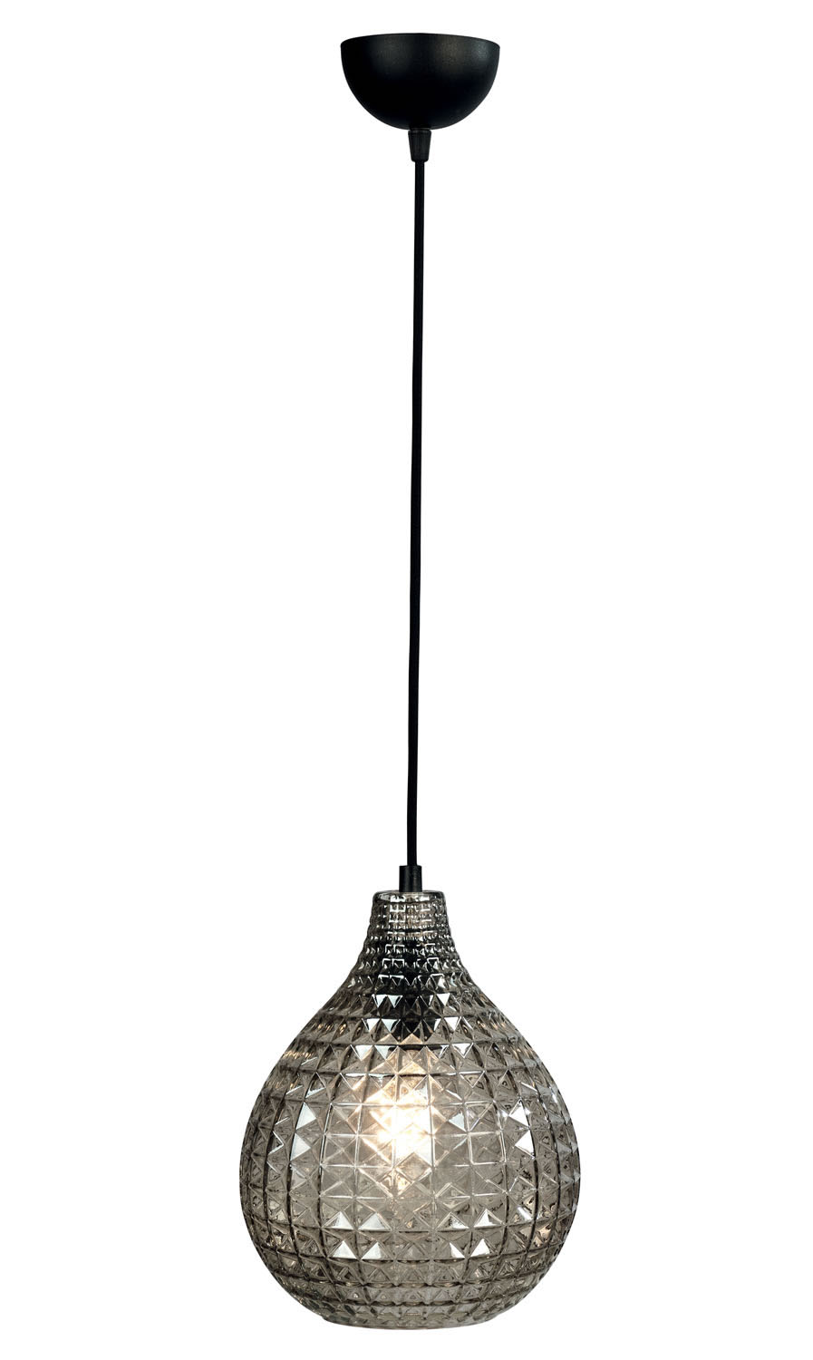 Φωτιστικό μονόφωτο γυάλινο σε μοντέρνα γραμμή και χρώμα φιμέ με υφασμάτινο καλώδιο μαύρο Ε27 Φ24