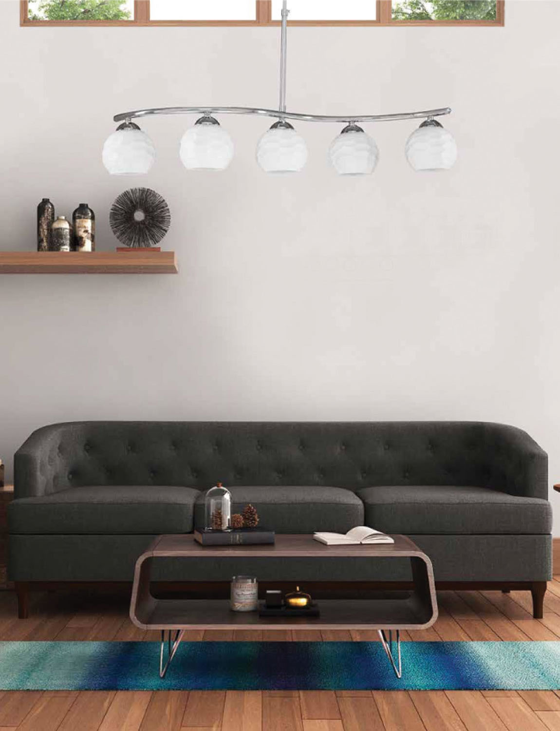 Φωτιστικό Πολύφωτο 5φ Ε27 σε κλασική γραμμή μεταλλικό σε χρώμιο με λευκό γυαλί