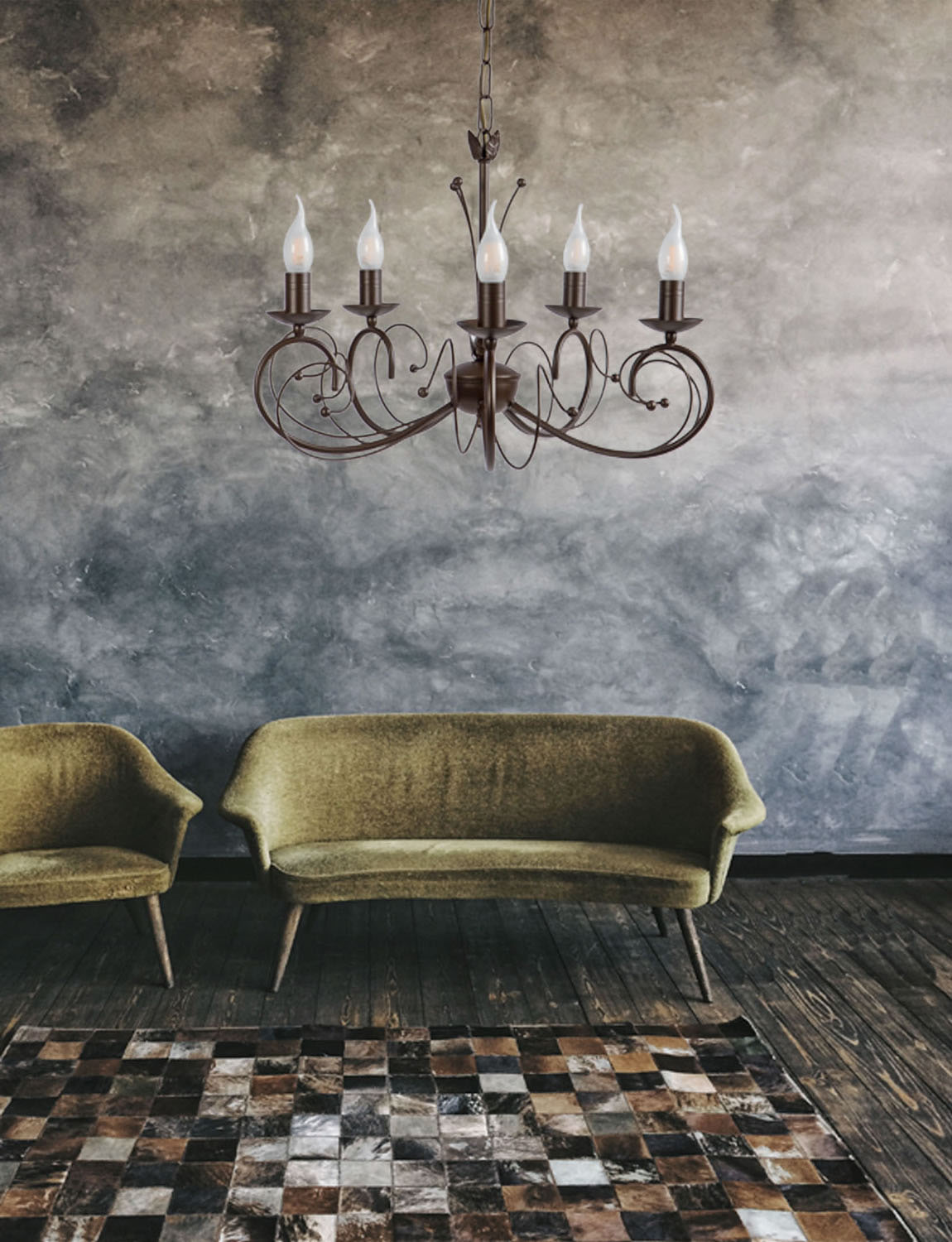 Φωτιστικό Πολύφωτο 5φ Ε14 σε country γραμμή μεταλλικό καφέ