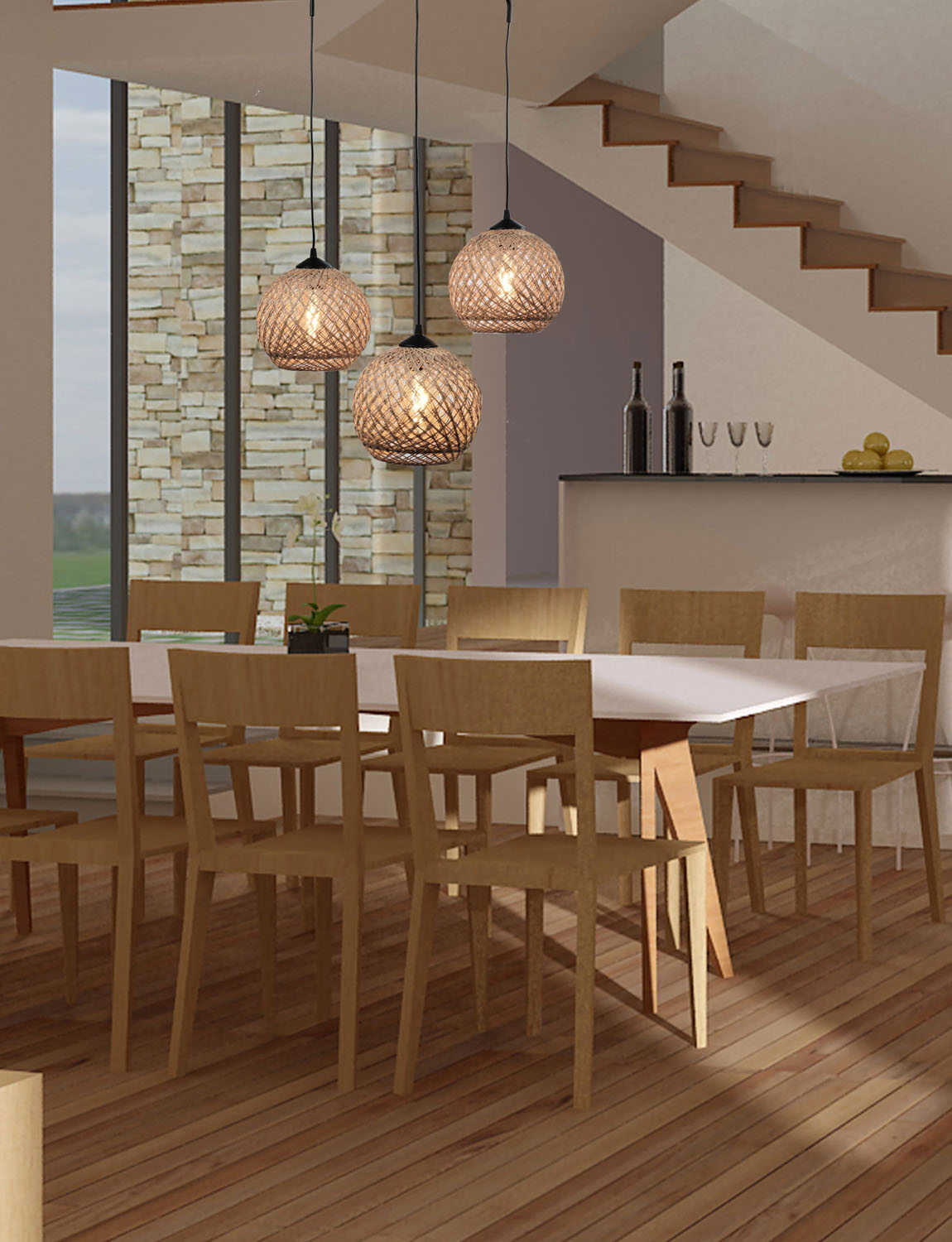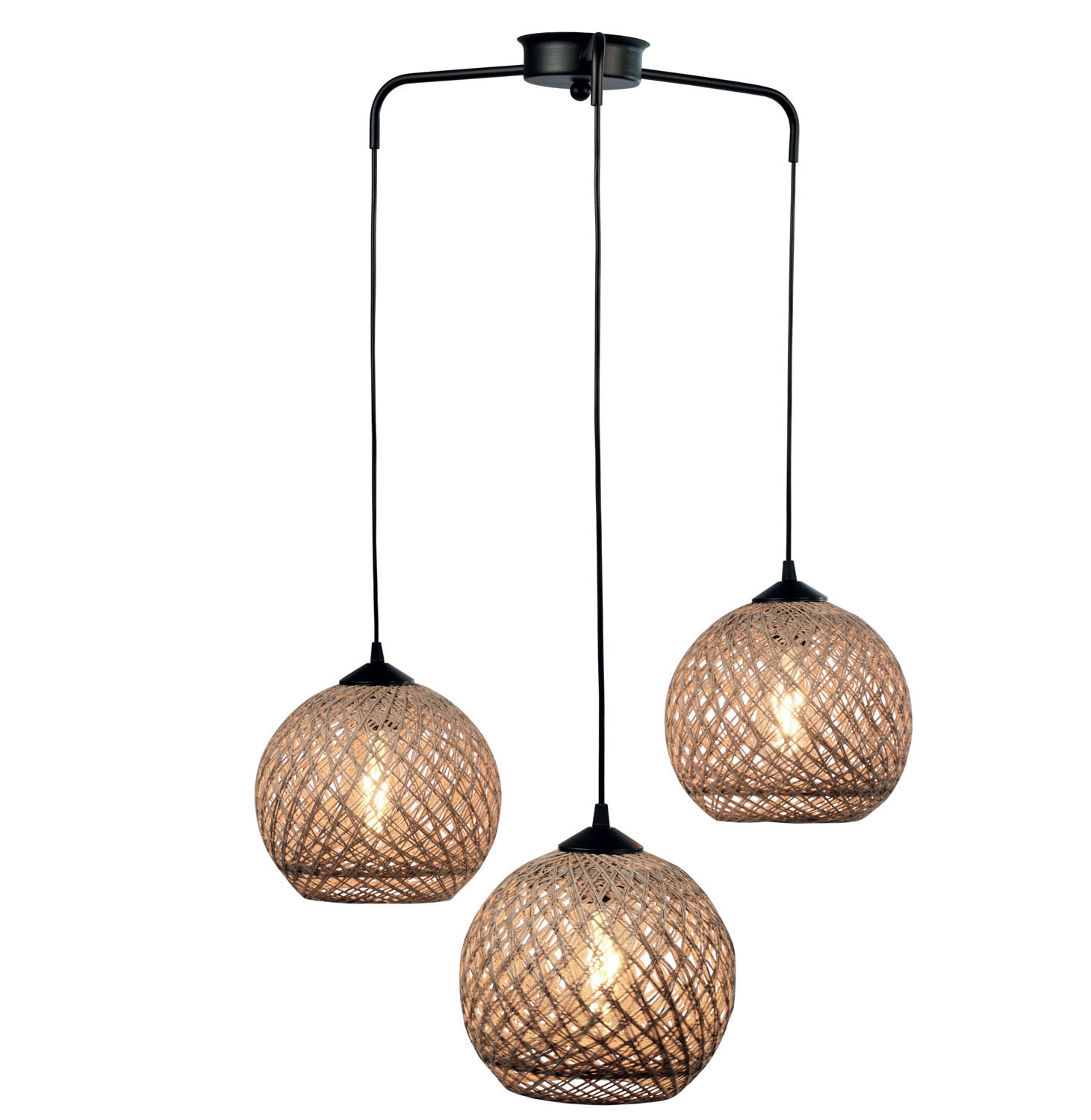 Φωτιστικό Πολύφωτο 3φ Ε27 σε μοντέρνα γραμμή ροζέτα μεταλλική μαύρη με μπάλα σε χρώμα natural