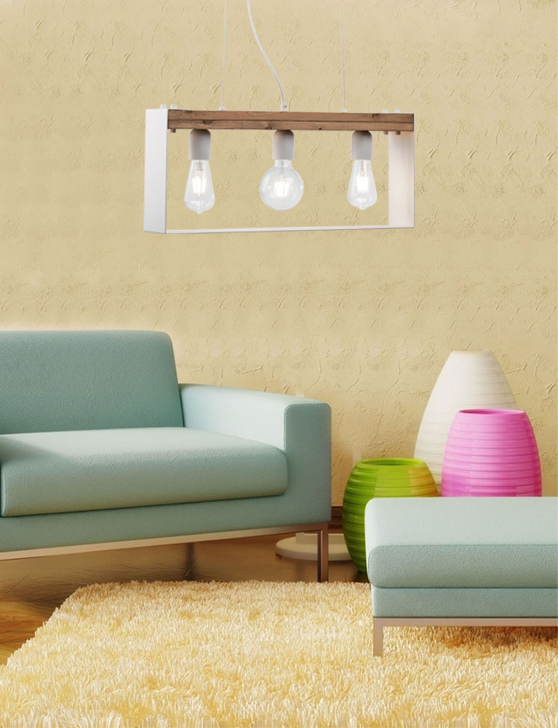 Φωτιστικό Πολύφωτο 3φ Ε27 σε μοντέρνα γραμμή με ξύλο σε φυσικό σκούρο χρώμα και μεταλλικά μέρη σε λευκό χρώμα