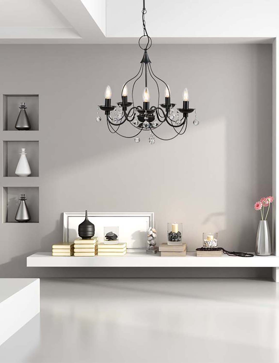 Φωτιστικό Πολύφωτο 5φ Ε14 Vintage μεταλλικό μαύρο με διάφανα κρύσταλλα