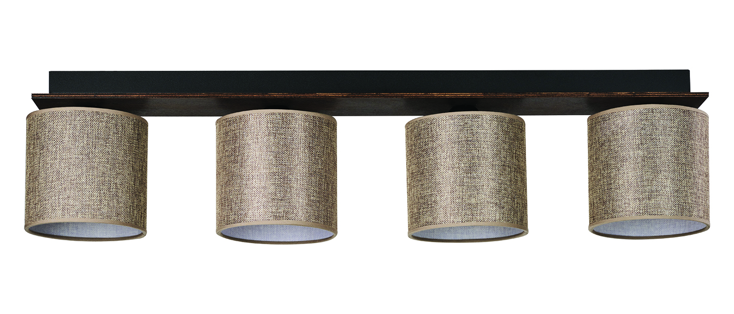 Φωτιστικό Οροφής 4φ Ξύλο/Αμπαζούρ μόκα Ε27