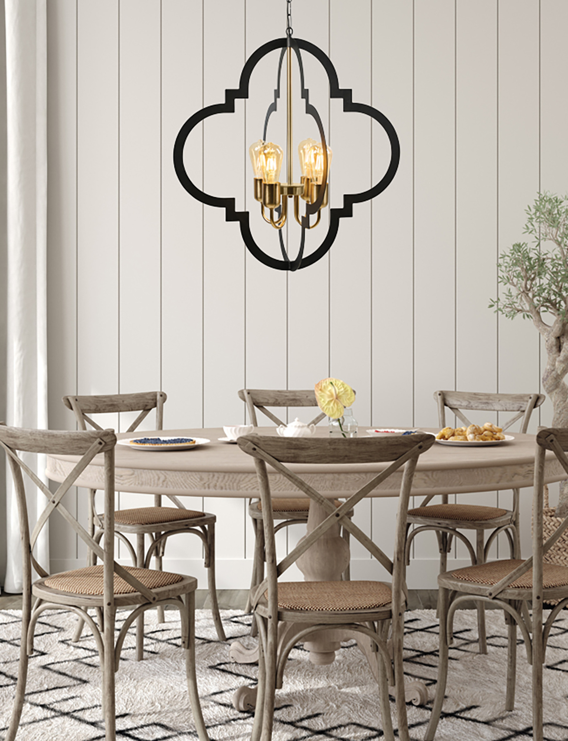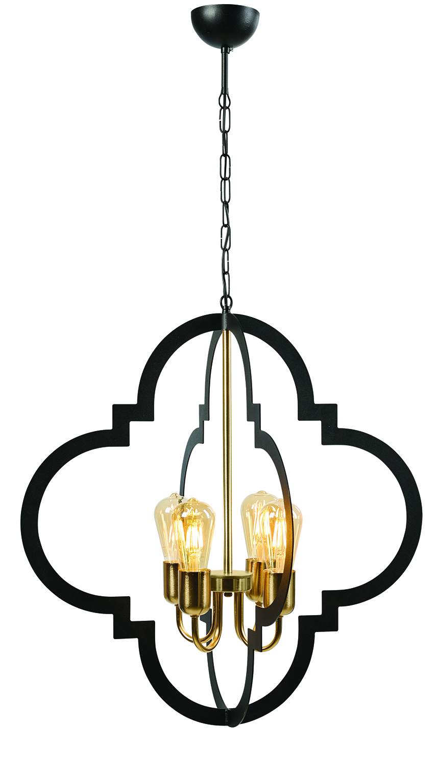 Φωτιστικό Πολύφωτο 4φ Ε27 κατασκευασμένο από μέταλλο μαύρο συνδυασμένο με χρυσές ματ λεπτομέρειες Φ60