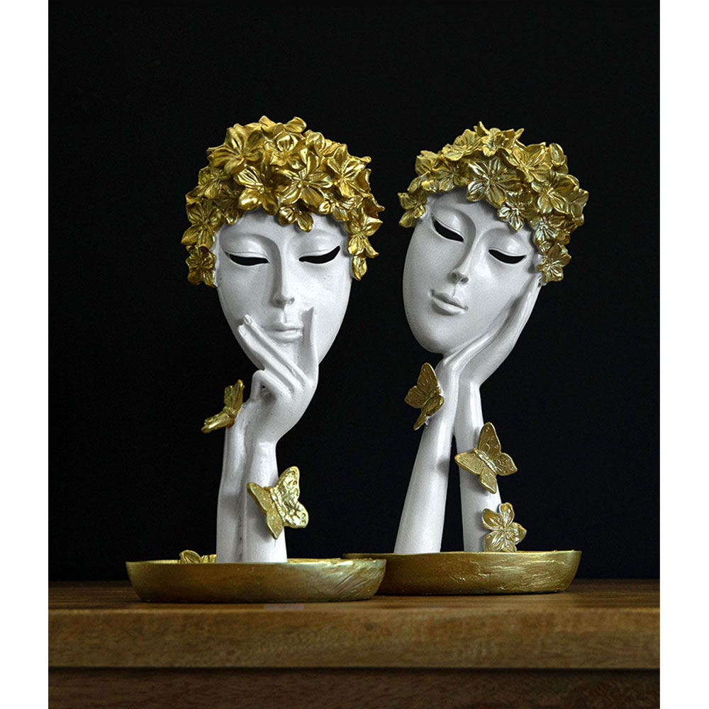 JARNI 2 DECO ΠΡΟΣΩΠΟ POLYRESIN ΛΕΥΚΟ ΧΡΥΣΟ 15x10,5xH28cm