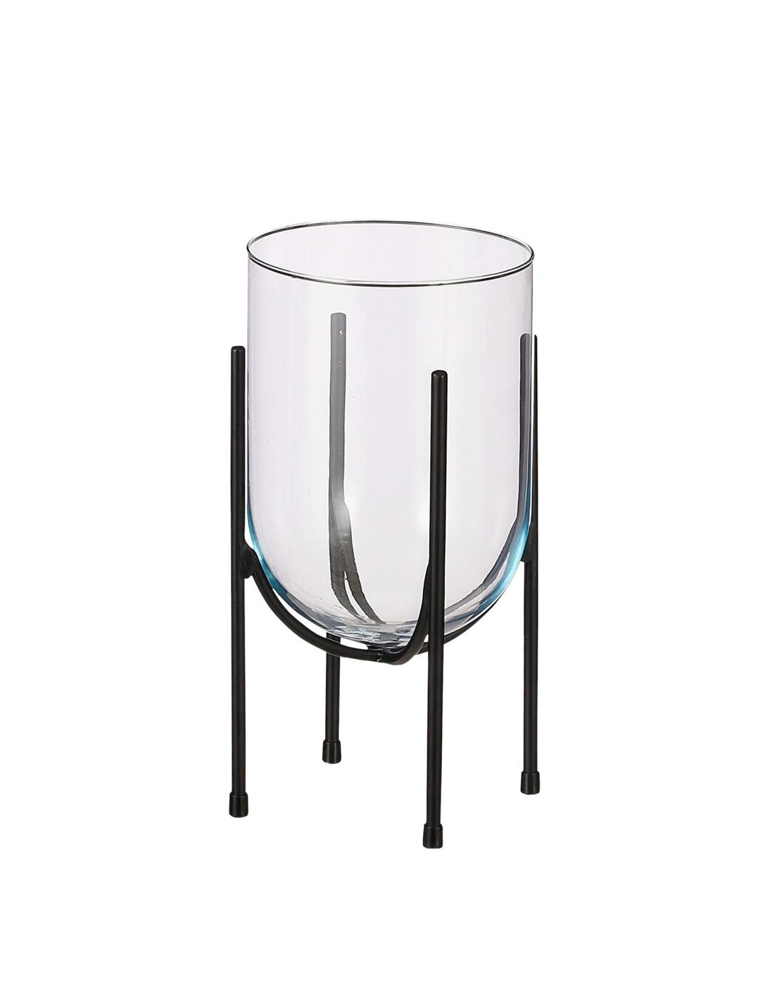 Βάζο γυαλ.σε μεταλ.τρίποδο 17Χ31