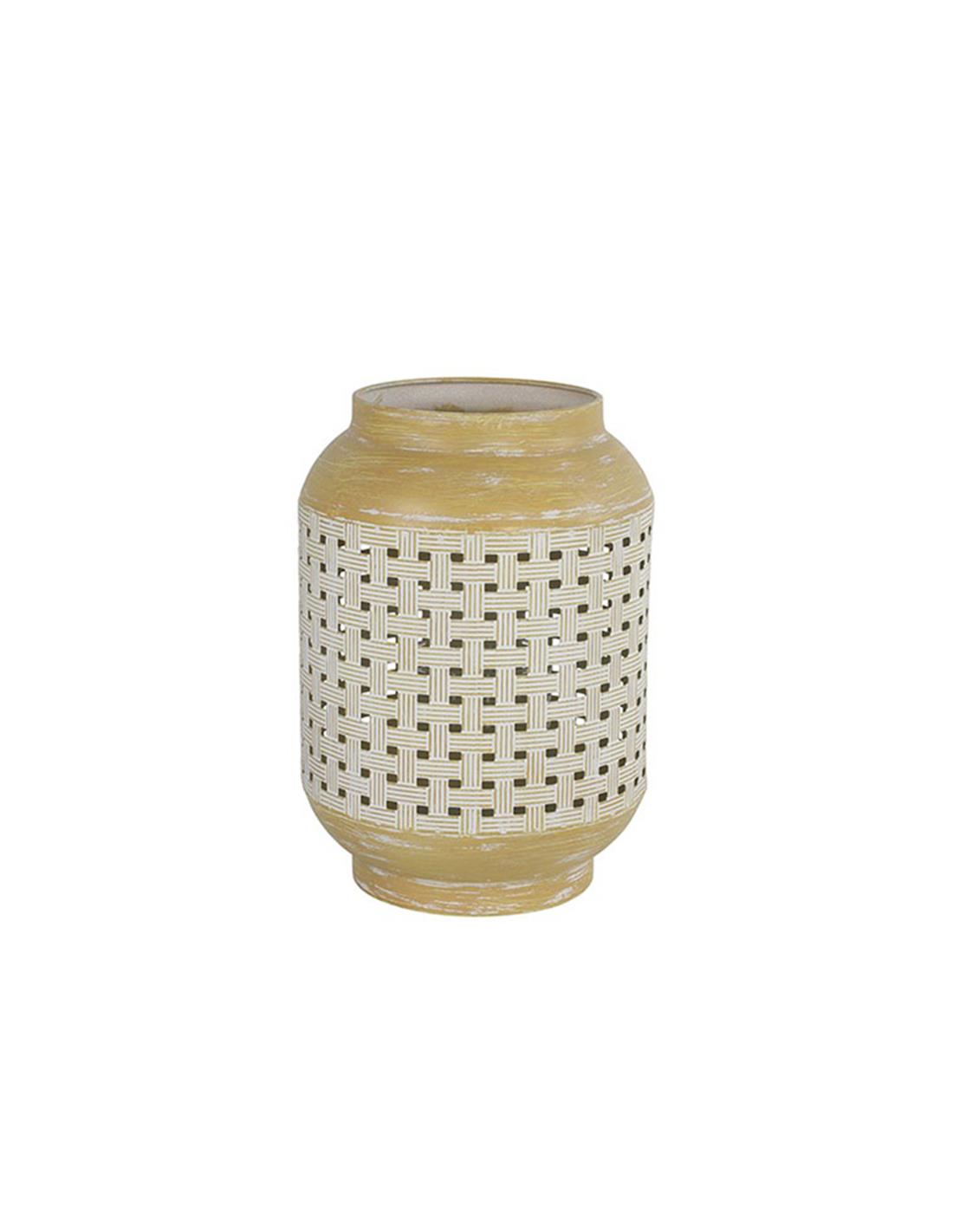 Φανάρι μεταλ.χρυσό με ψάθα λευκή 18Χ25,5