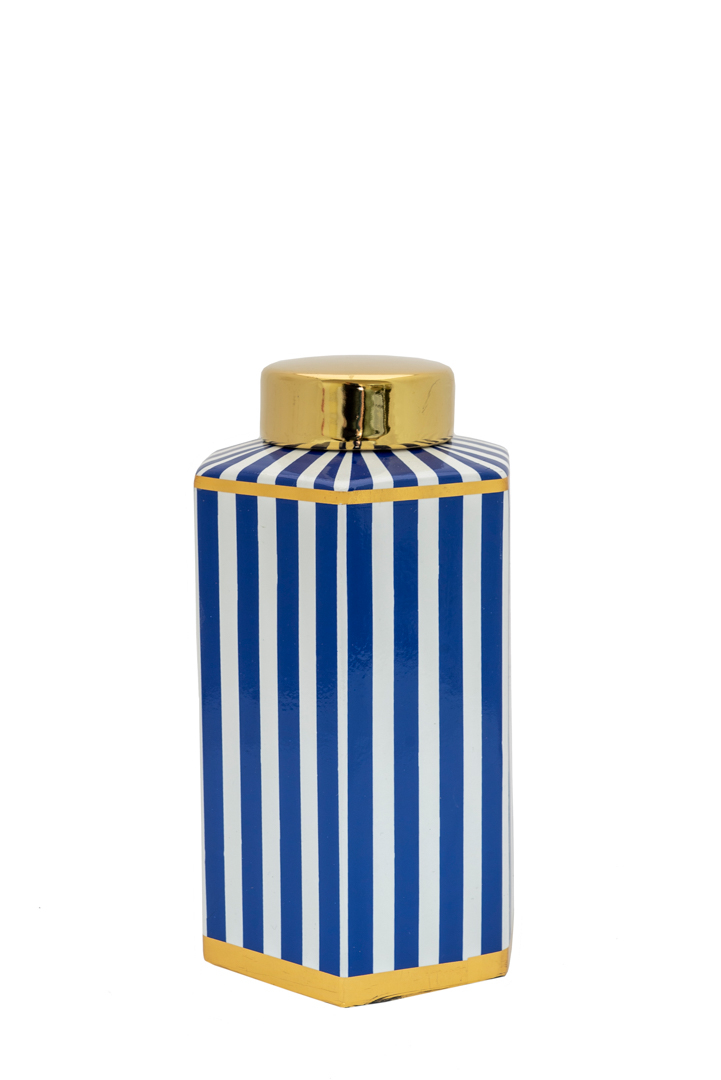 ΔΙΑΚΟΣΜΗΤΙΚΟ ΒΑΖΟ ΚΕΡΑΜΙΚΟ ΠΟΛΥΓΩΝΙΚΟ ΡΙΓΕΣ ΜΠΛΕ ΛΕΥΚΟ ΜΕ ΧΡΥΣΟ ΚΑΠΑΚΙ 14Χ13Χ24ΕΚΕΚ