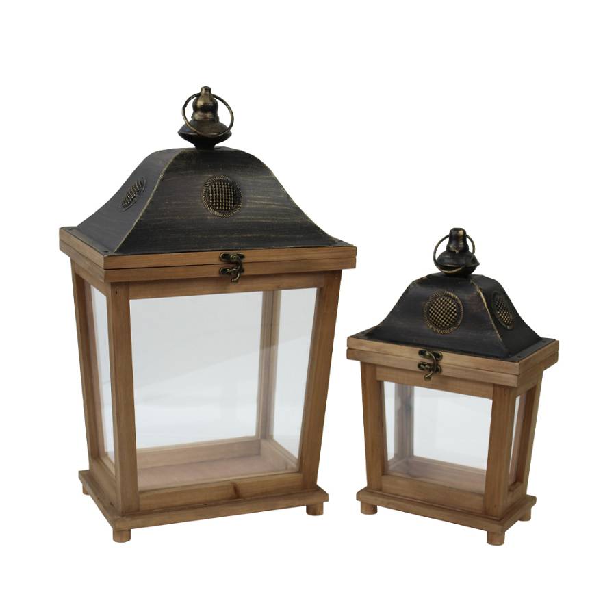 RAISA ΦΑΝΑΡΙ SET 2ΤΜΧ ΞΥΛΟ ΓΥΑΛΙ ΦΥΣΙΚΟ 28/20x20/12,5xH49/34cm