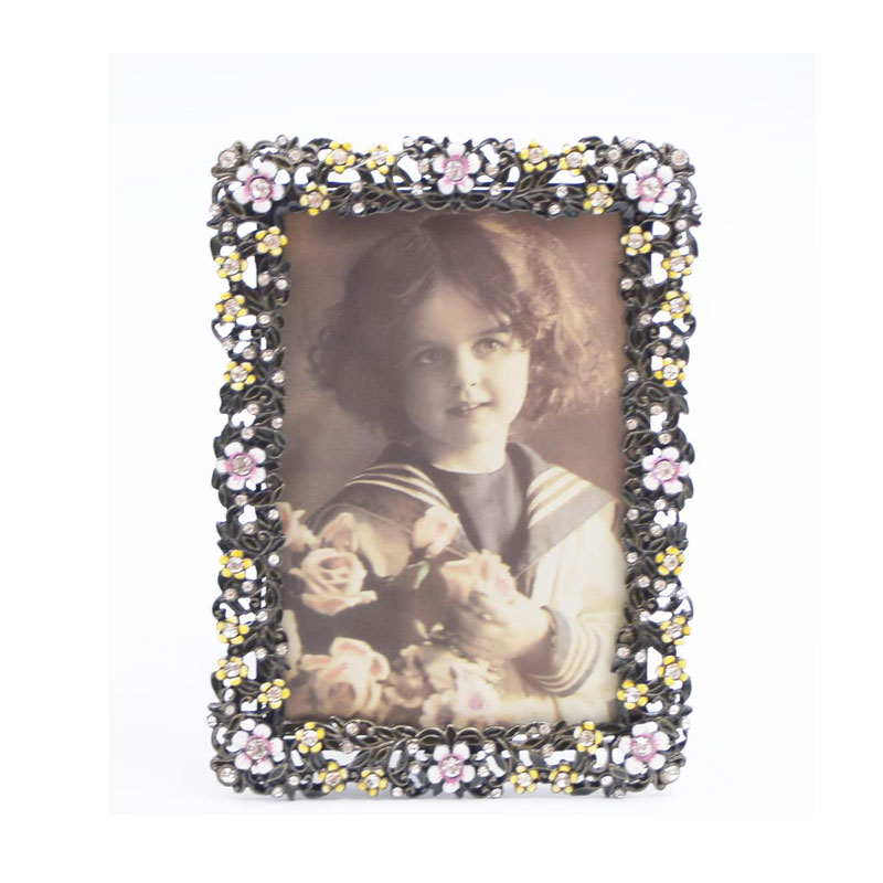 Κορνίζα Μεταλλική Με Λουλούδια Σε Ροζ Και Κίτρινη Απόχρωση Και Στρας