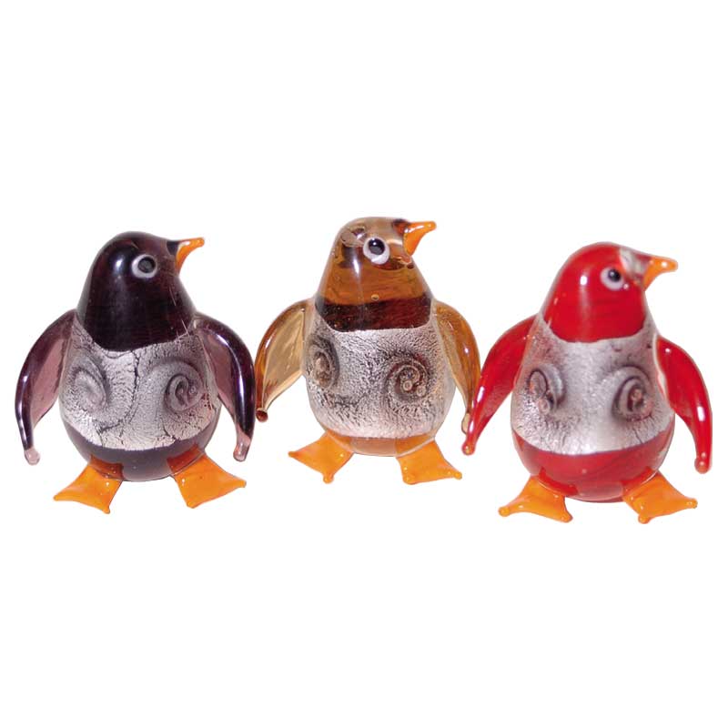 Πιγκουίνοι Γυάλινοι Τύπου Murano Σε Μωβ Μελί Και Κόκκινη Απόχρωση Σ/3
