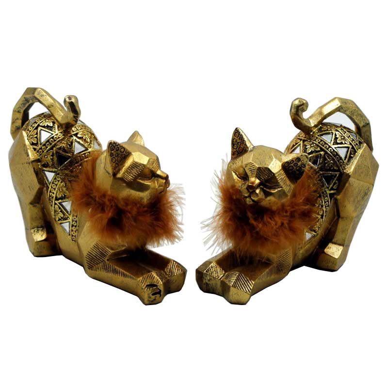 Γάτες Σε Χρυσή Απόχρωση πολυεστερικές Με Ανάγλυφα Σχέδια Και Γούνα Σετ/2