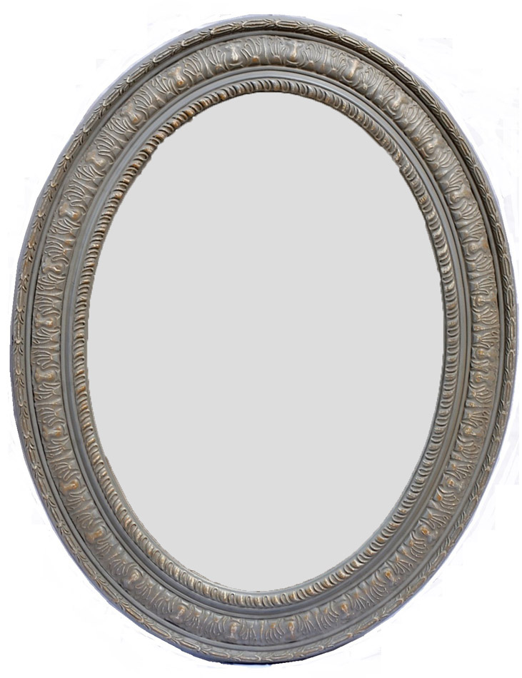 Καθρέφτης Οβάλ Ταγιαρισμένος, Ξύλινος Και Σκαλιστός. Light Grey Gold .