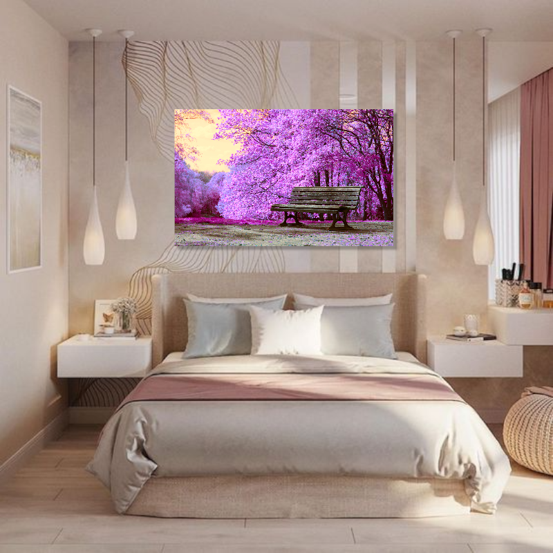 BDL093 - Πίνακας παγκάκι σε μωβ δάσος (ΑΚΟΛΟΥΘΕΙ ΒΙΝΤΕΟ)