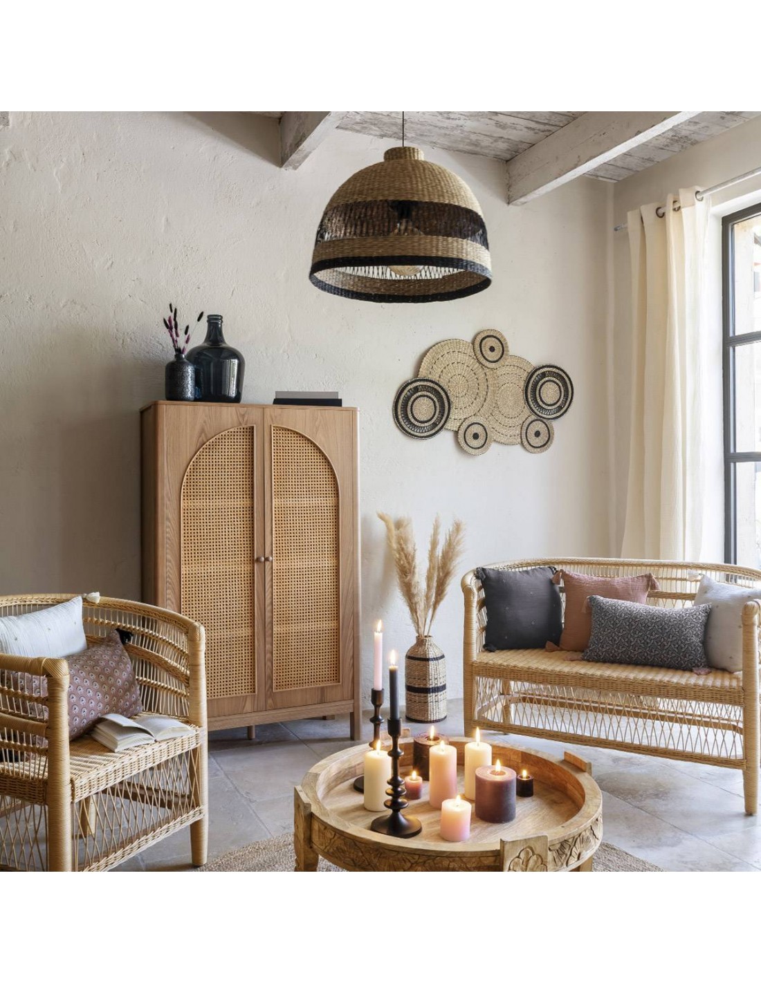 Διακοσμ.τοίχου ψάθινο ΚΥΚΛΟΙ 115X72