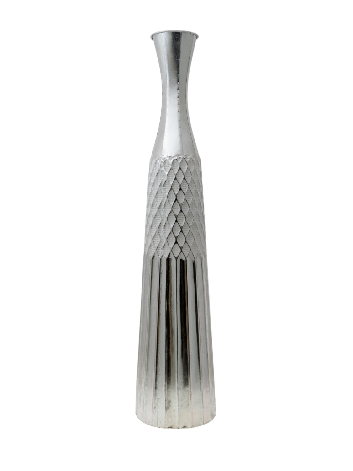 ΔΙΑΚΟΣΜΗΤΙΚΟ ΒΑΖΟ ΜΕΤΑΛΛΙΚΟ ΔΑΠΕΔΟΥ ΑΣΗΜΙ ΛΕΥΚΟ ΜΕ ΡΟΜΒΟΥΣ ΚΑΙ ΓΡΑΜΜΕΣ. 18,8Χ18,8Χ86,8ΕΚ