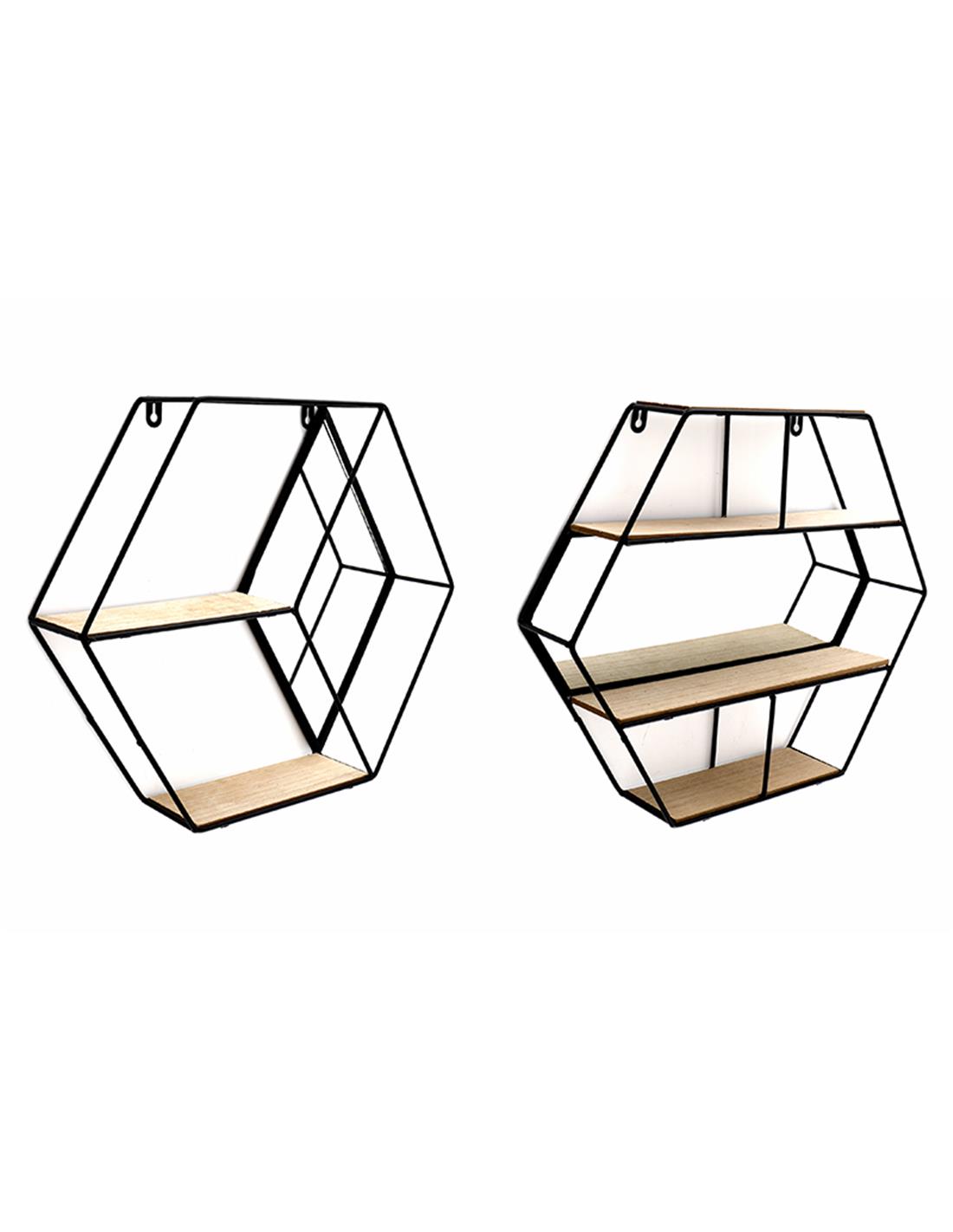 Ράφι τοίχου πολυγωνικό με καθρέπτη 46x40 2σχ.