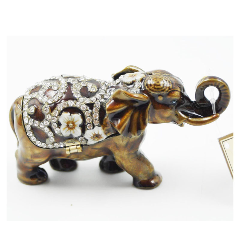 Κουτάκι Ελέφαντας Μινιατούρα Σε Καφέ Απόχρωση Με Σμάλτο Και Στρας 9x3.5x5cm