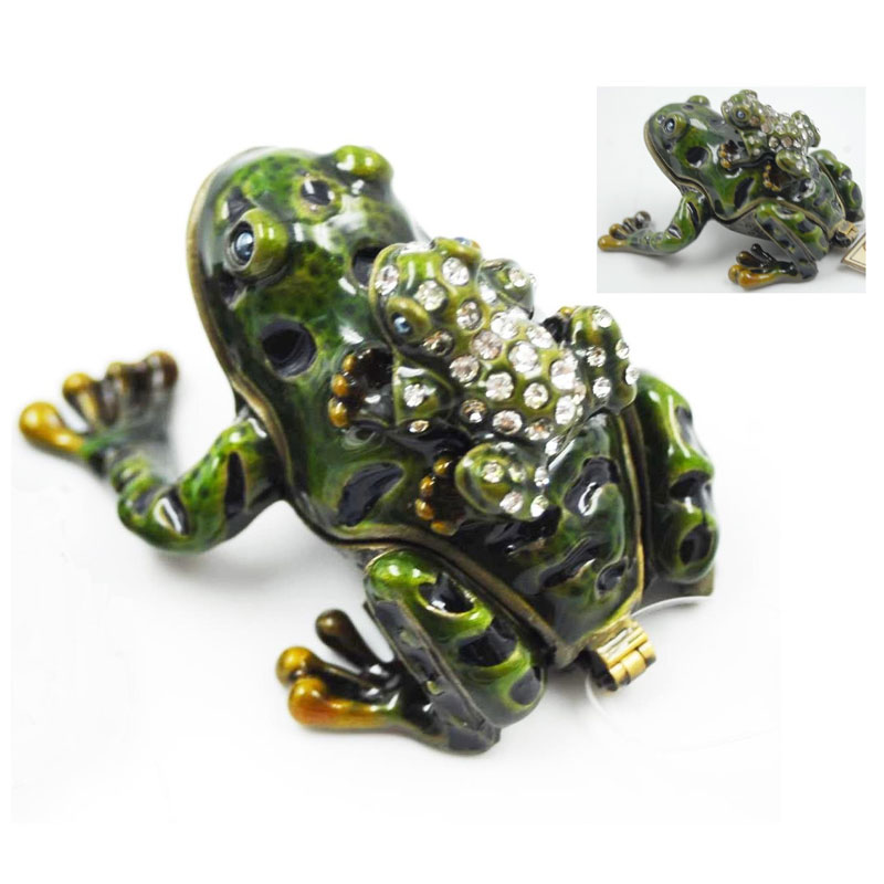 Κουτάκι Βάτραχος Με Μωρό Μινιατούρα Σε Πράσινη Απόχρωση Με Σμάλτο Και Στρας