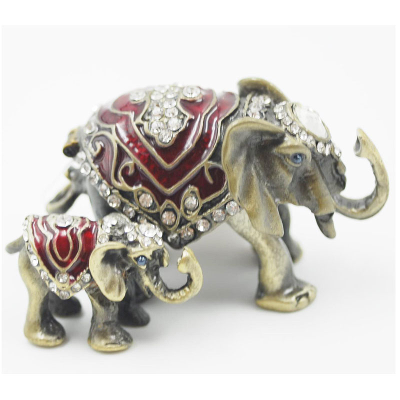 Κουτάκι Ελέφαντας Με Μωρό Μινιατούρα Σε Κόκκινη Απόχρωση Με Σμάλτο Και Στρας
