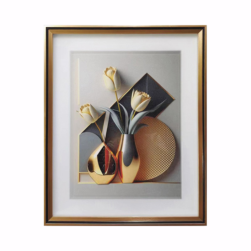 ΚΑΔΡO ΜΕ ΧΡΥΣΗ ΚΟΡΝΙΖΑ & ΓΥΑΛΙ - 3D ΜΕΤΑΛΛΙΚΑ ΒΑΖΑ - 41x51cm 30/ΚΙΒ