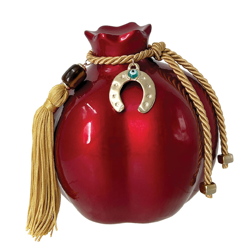 ΚΕΡΑΜΙΚΟ ΡΟΔΙ ΓΙΓΑΣ ΛΟΞΟ ΚΟΚΚΙΝΟ ΣΤΟΛΙΣΜΕΝΟ ΧΡΥΣΟ ΠΕΤΑΛΟ & ΦΟΥΝΤΑ - Φ13x14cm