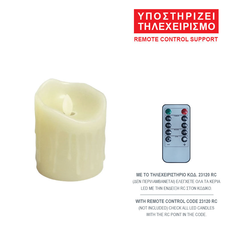 ΚΕΡΙ LED ΕΚΡΟΥ ΜΕ ΕΠΙΚΑΛΥΨΗ ΚΕΡΙΟΥ, ΚΙΝΟΥΜΕΝΗ ΦΛΟΓΑ, ΤΗΛΕΧΕΙΡΙΣΜΟΣ - Φ7.5x10cm 60/ΚΙΒ