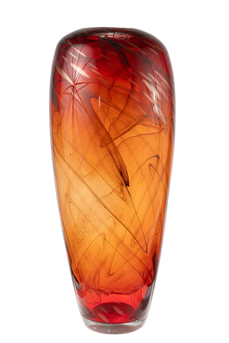 ΔΙΑΚΟΣΜΗΤΙΚΟ ΒΑΖΟ ΧΕΙΡΟΠΟΙΗΤΟ ΑΠΌ ΓΥΑΛΙ ΜΕ ΚΟΚΚΙΝΟ ΧΡΥΣΟ ΣΧΕΔΙΟ 21Χ21Χ49,5ΕΚ