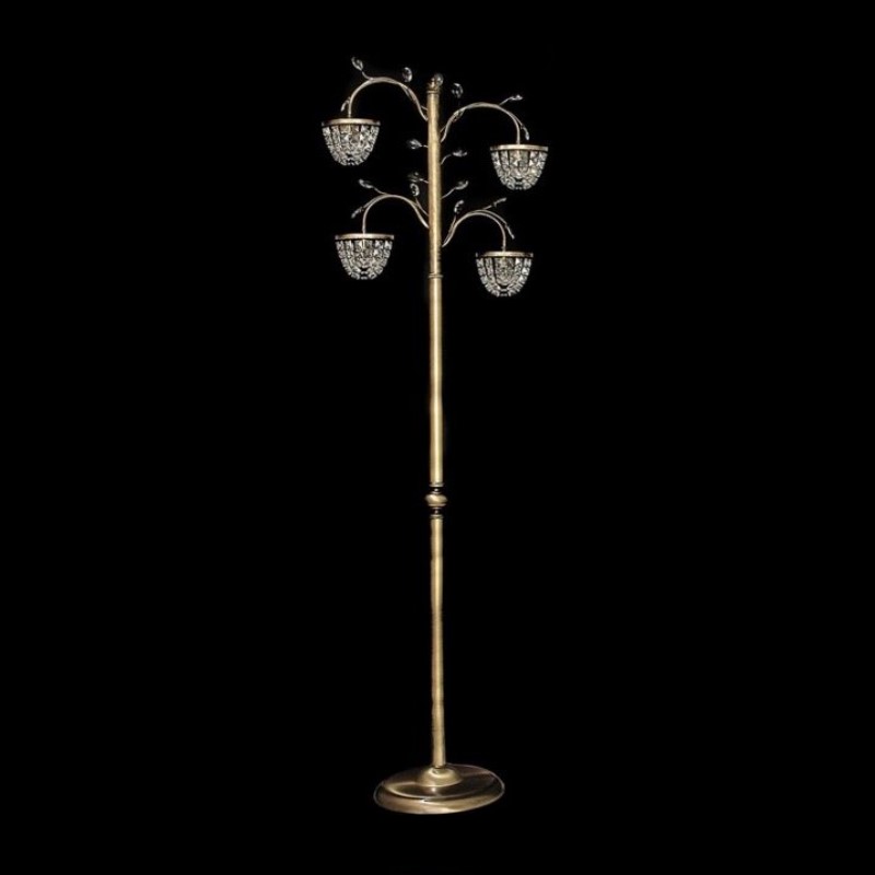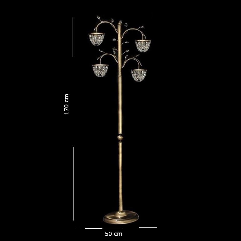 Ένα φωτιστικό δαπέδου μεταλλικής κατασκευής σε χρυσό χρώμα, με διακοσμητικές γυάλινες μελί μπάλε. Διαθέτει 4 υποδοχές για λαμπτήρες G9. Οι ιδιαιτερότητες του φωτιστικού θα δημιουργήσουν στο χώρο σας ένα ιδιαίτερο, νεοκλασσικό στυλ!