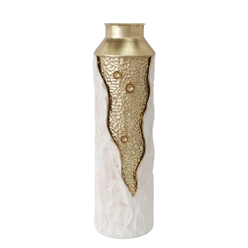 ΜΕΤΑΛΛΙΚΟ ΒΑΖΟ ΧΡΥΣΟ/ΛΕΥΚΟ ΣΚΙΣΜΕΝΟΣ ΦΛΟΙΟΣ - φ16.4x56.5cm 4/KIB
