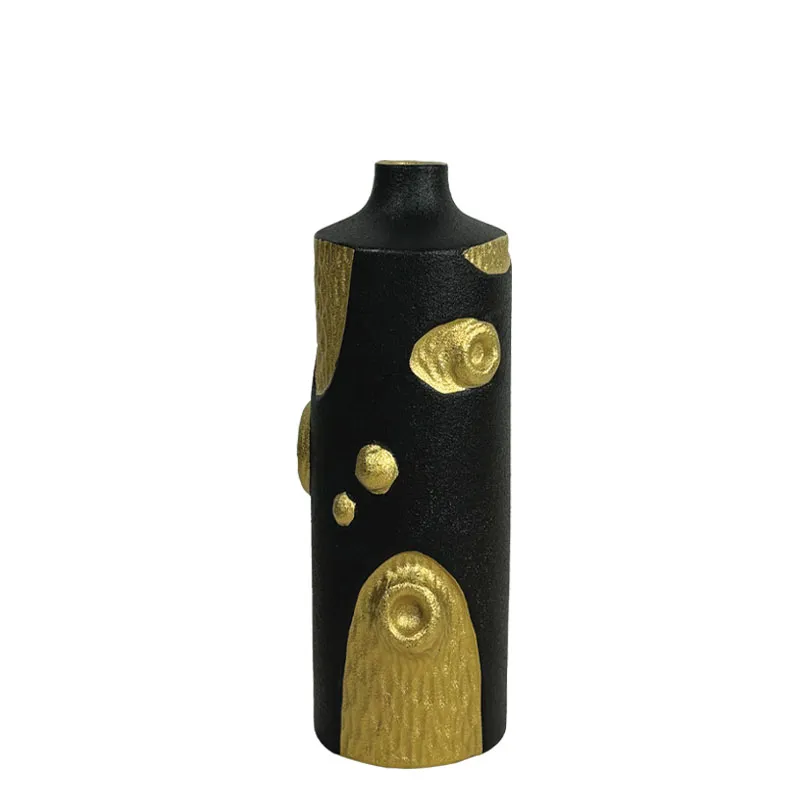 ΚΕΡΑΜΙΚΟ ΒΑΖΟ ΜΑΥΡΟ ΨΗΛΟ ME ΧΡΥΣA ΠΡΟΣΘΕΤΑ ΚΟΜΜΑΤΙΑ ΜΕΣΑΙΟ - 36.8cm1/9ΚΙΒ